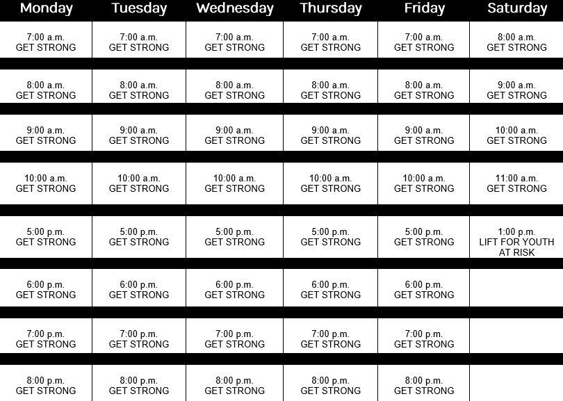 STRONG EVOLUTION CLASS SCHEDULE